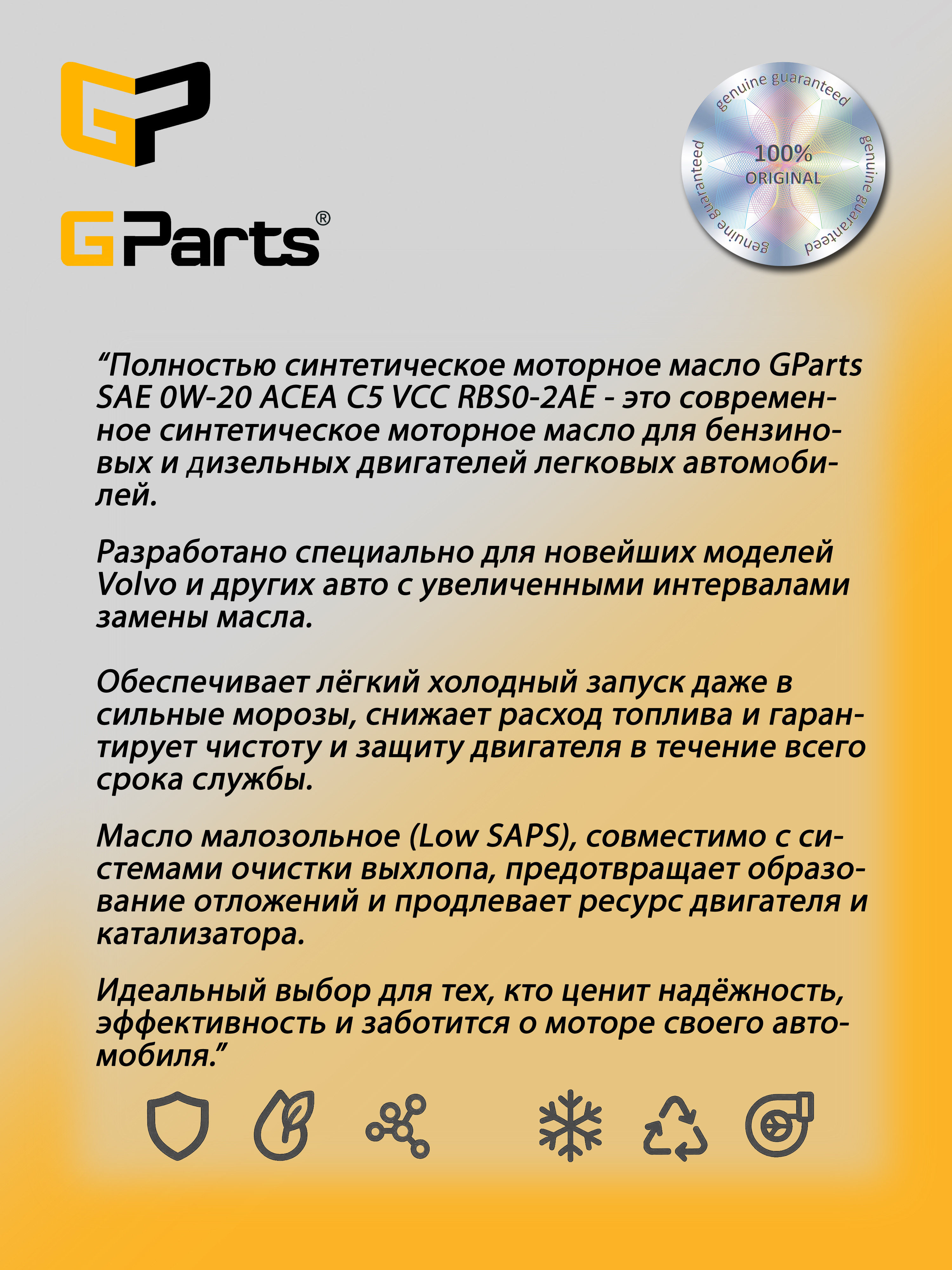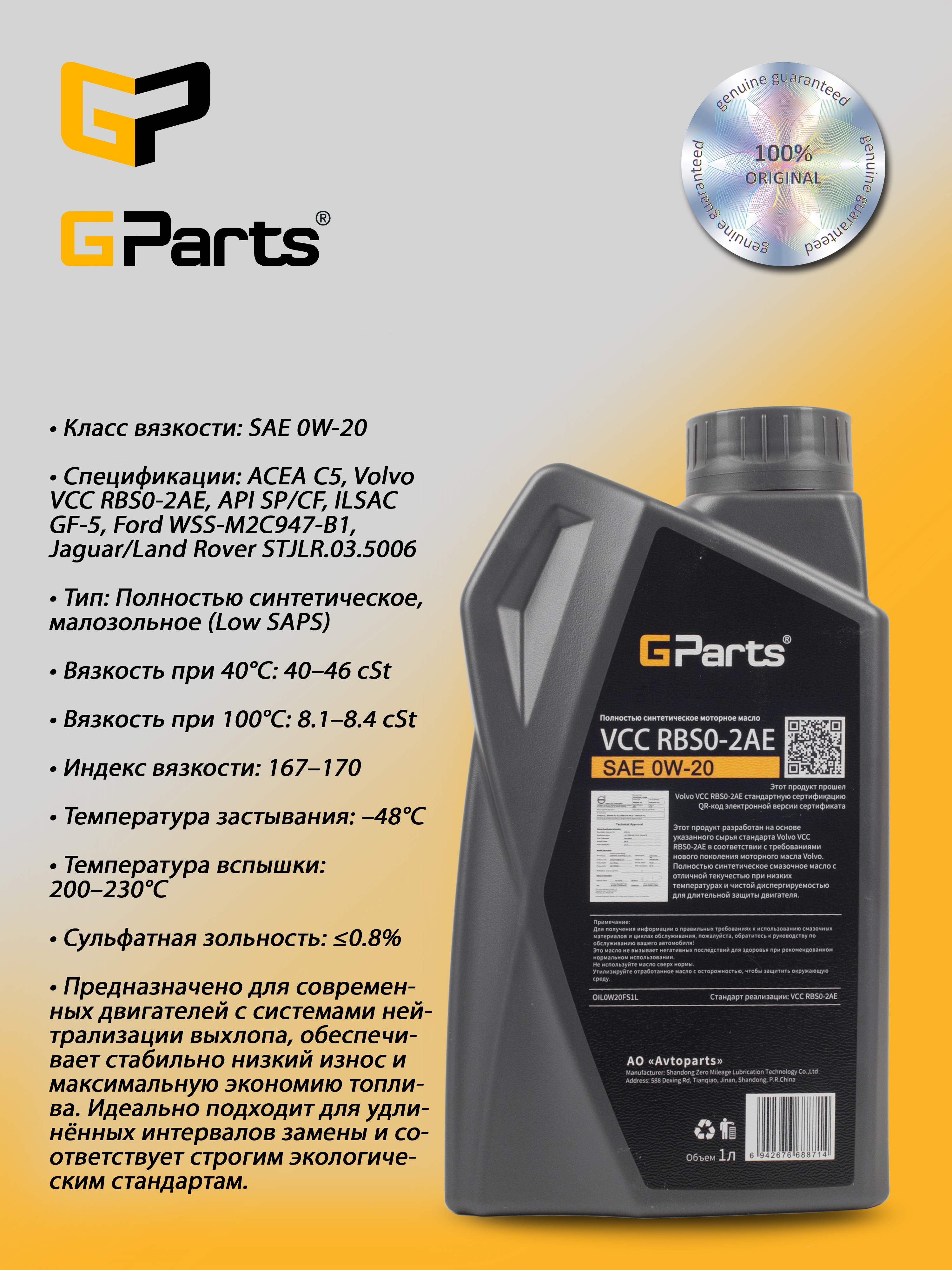OIL0W20FS1L Масло моторное GParts 0W20 - VCC RBS0-2AE C5, 1 л GParts