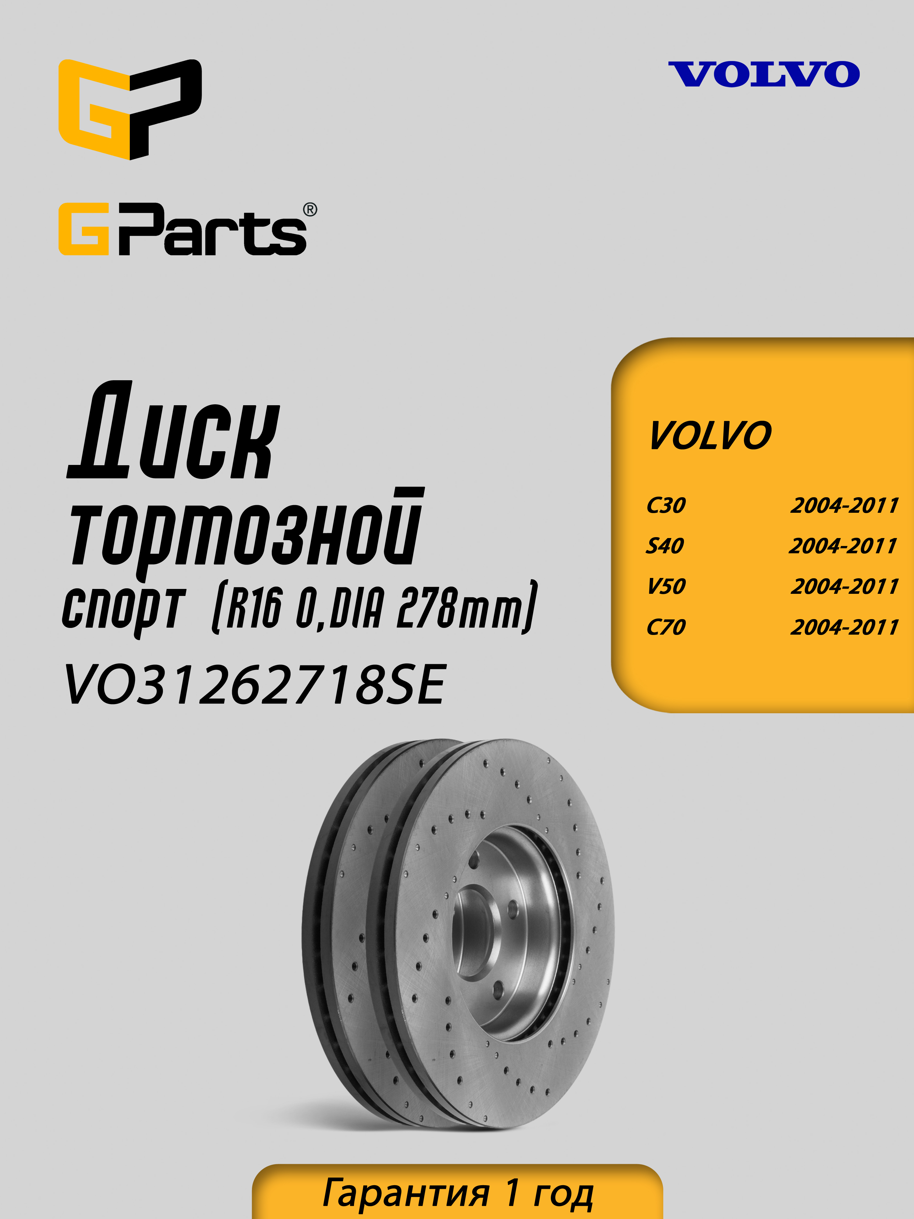 VO31262718SE Диск тормозной передний (R15, O.DIA 278 mm, спорт) GParts