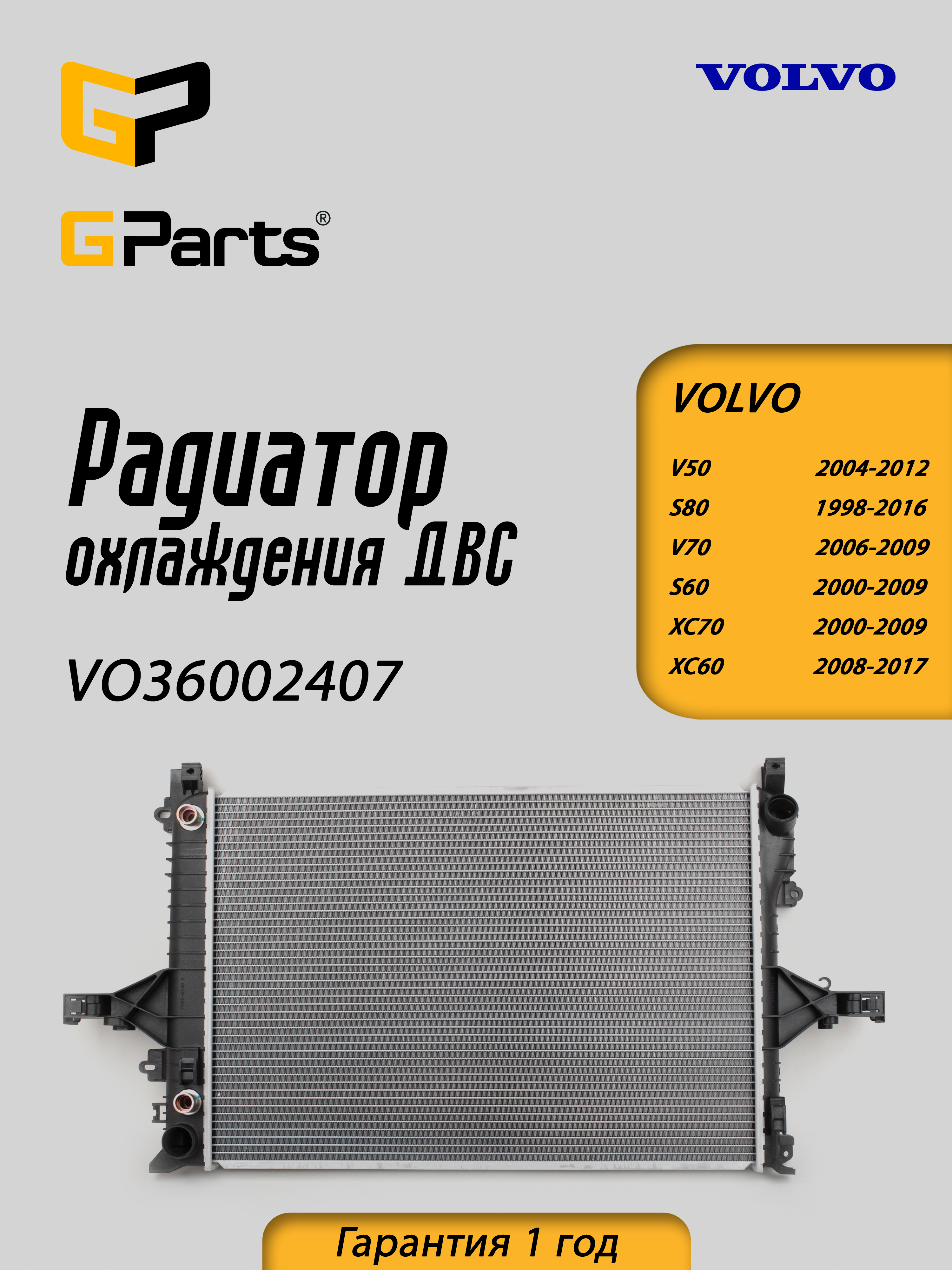 VO36002407 Радиатор охлаждения ДВС GParts