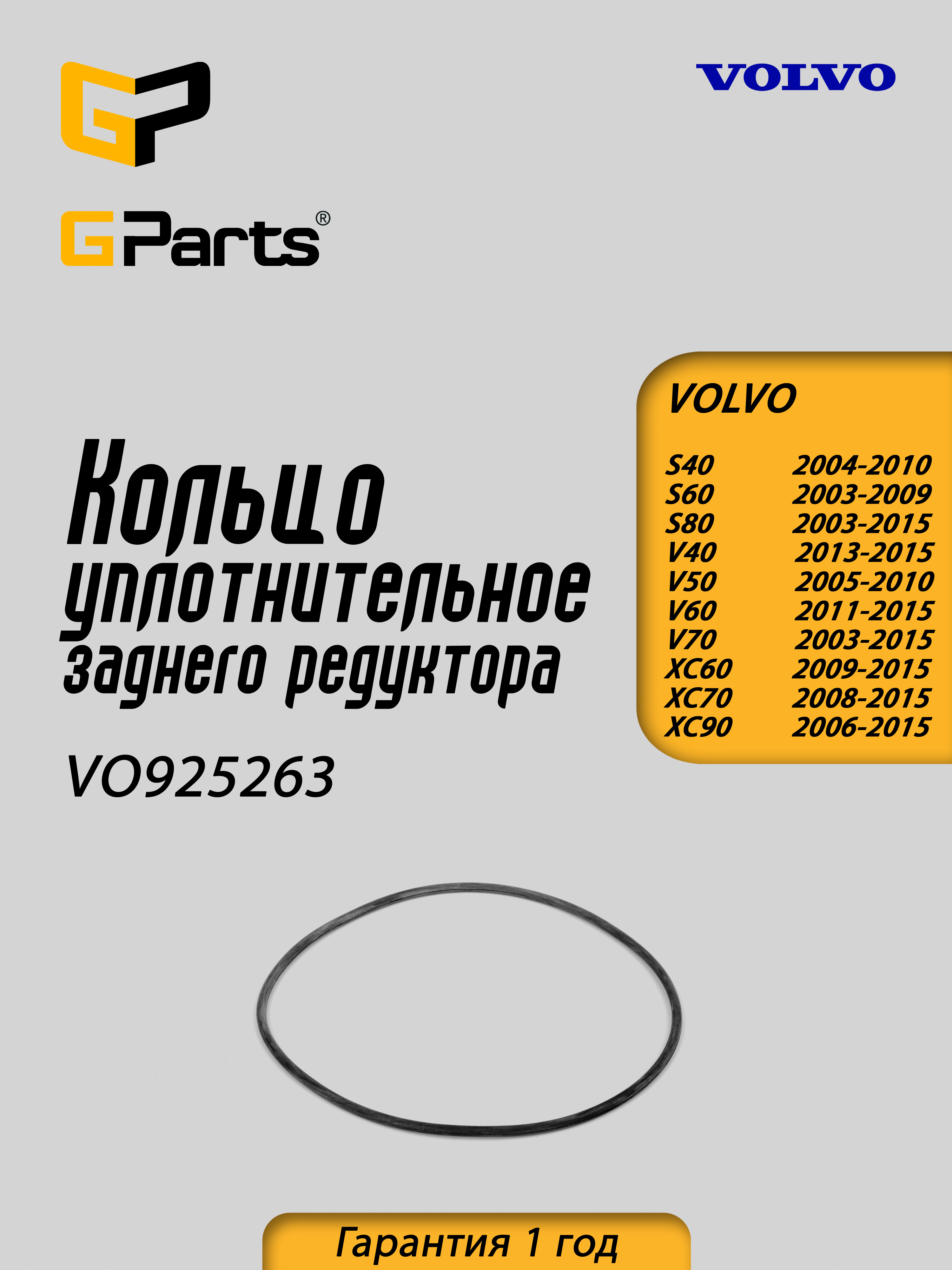 VO925263 Кольцо уплотнительное заднего редуктора GParts